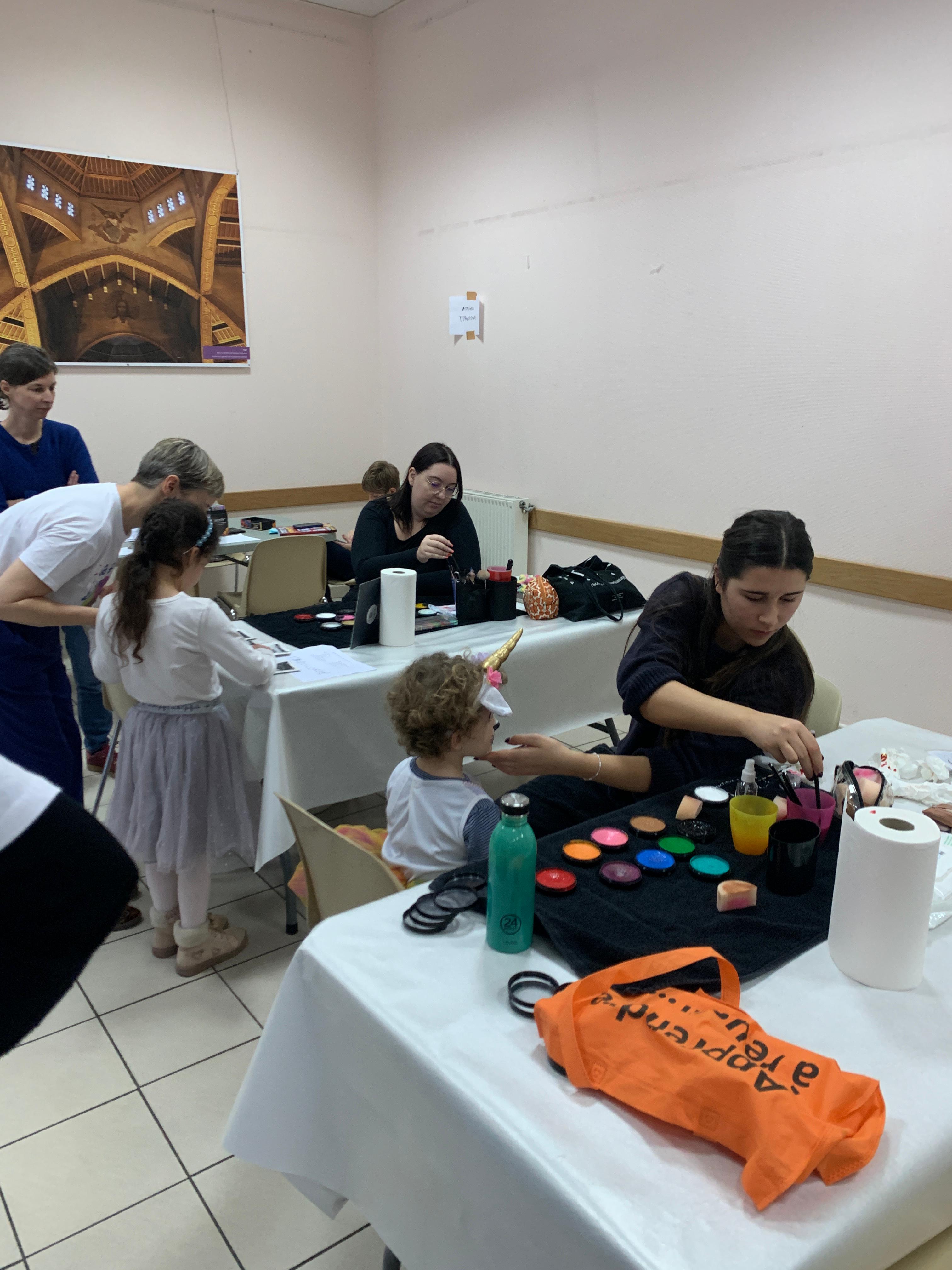 Tout au long de l’après-midi, plusieurs ateliers créatifs et ludiques ont été proposés aux participants. La confection de couronnes de Noël,la création de mangas et des séances de maquillage ont tous rencontré un vif succès auprès des enfants.